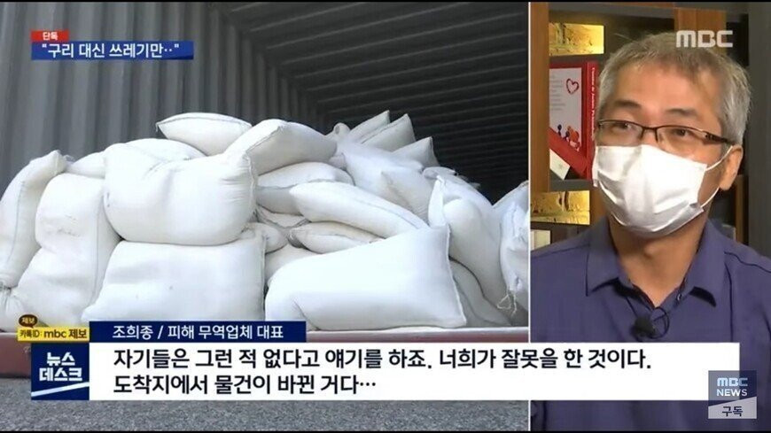 구리 원료 수입했는데 보낸건 석회가루,벽돌 사실상 폐기물 보냄