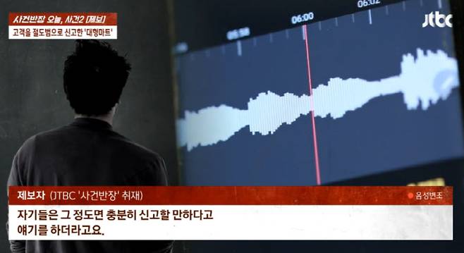 (사진=JTBC 사건반장 캡처)답답한 마음에 마트로 찾아간 A씨가 절도 정황에 대해 묻자 마트 측은 “직접 판매한 직원들이 고객이 카트에 물품을 넣었다고 했다. 그런데 고객이 나가는 장면에서는 카트에 물품이 없어서 절도 의심을 했다”며 “의심할 만한 정황이었다”고 끝까지 자신의 주장을 굽히지 않았다.