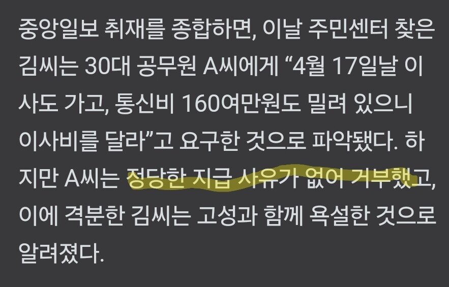 50대 여성 : 이사비 줘