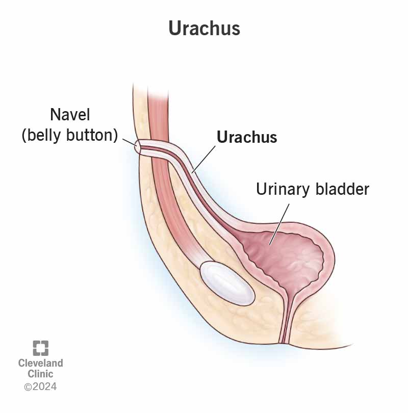 배꼽은 태아 상태에서 방광과 연결되어 있는데, 요막관이라고 불리는 곳을 통해서 연결되어 있고, 태어나는 순간 폐쇄되는 데 가끔 이게 안되는 사람이 있음.