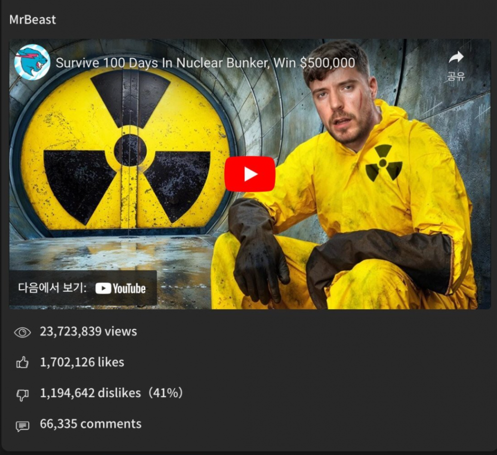 미스터비스트 저격영상이 천만뷰 돌파