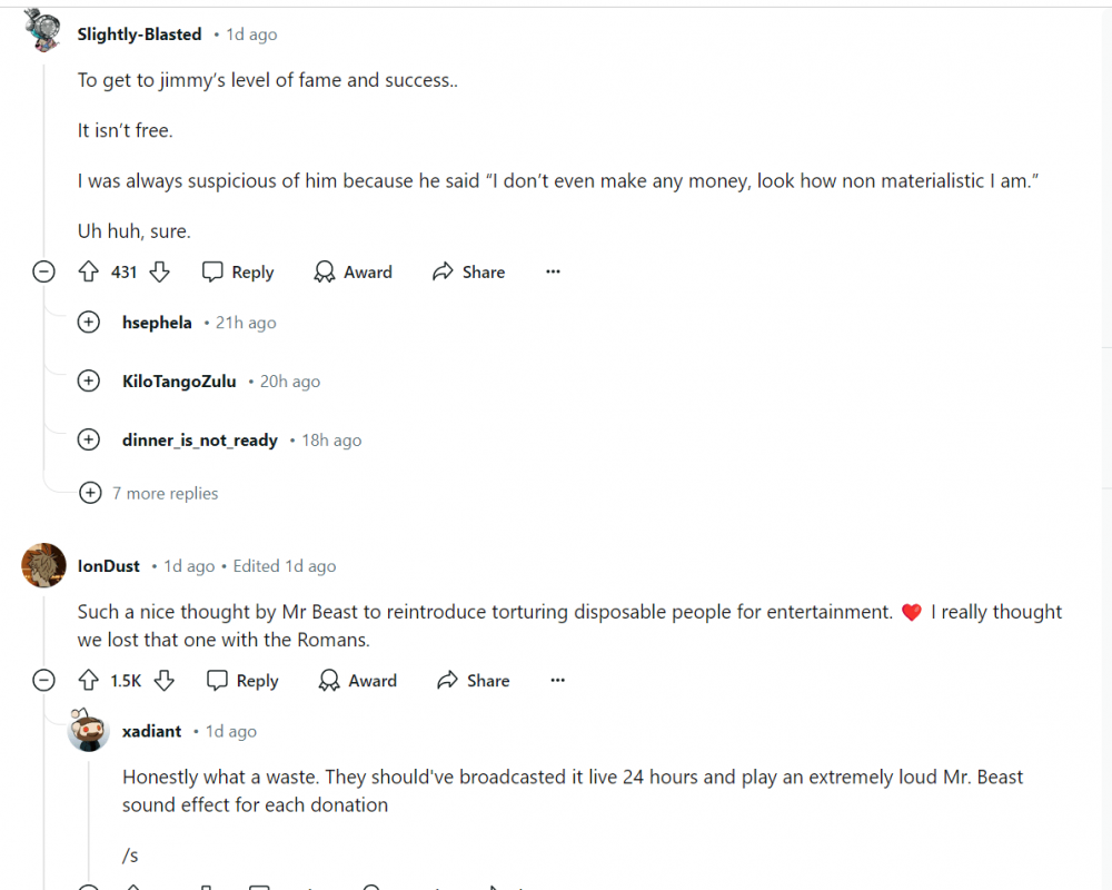 다만 미스터비스트 체급자체가 워낙 크고 어린이나 해외 시청자들도 많아서 찐 나락 보내기는 다들 불가능하다 보는중