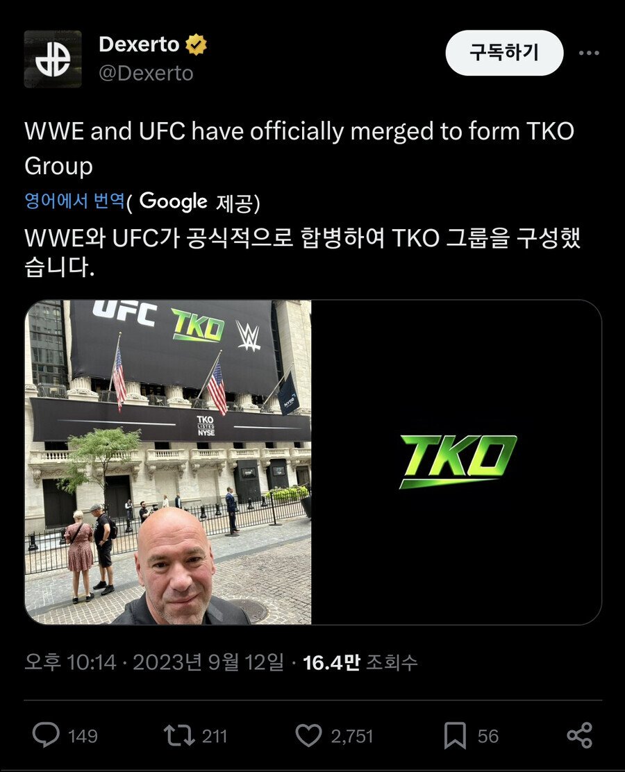 오피셜) 레슬링과 종합 격투기 단체 합병