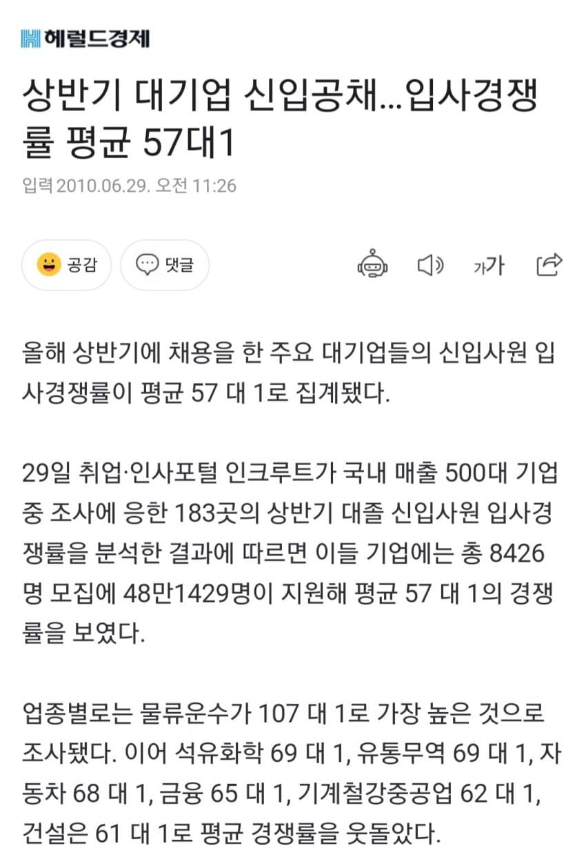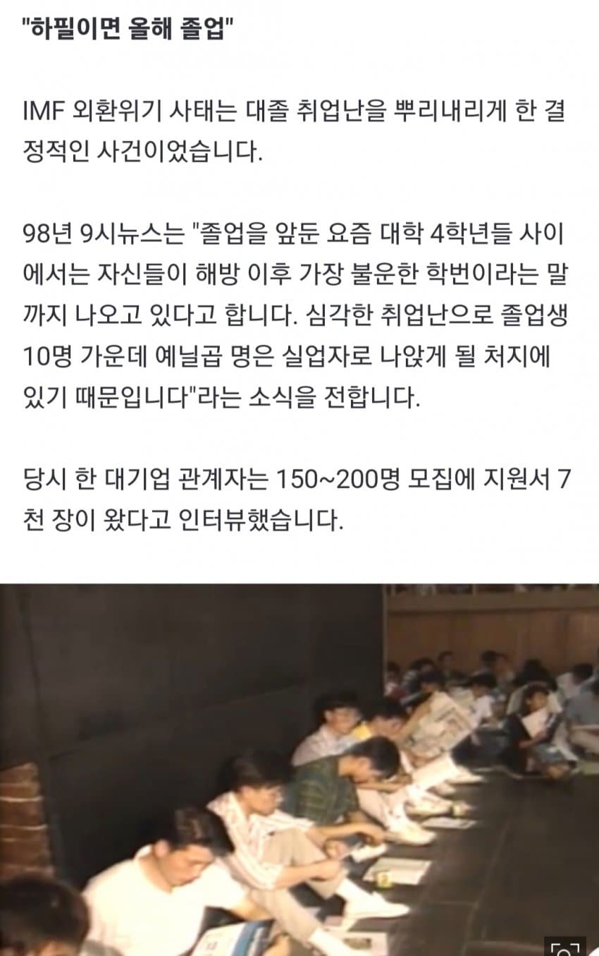 싱글벙글 IMF 전부터 지금까지의 취업경쟁률 비교